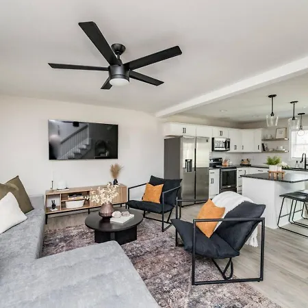 The Madison - 5 Minutes To Downtown, Firepit And Deck! Villa includes a bathroom with a washing machine. A hair dryer and free toiletries are included to enhance your comfort.